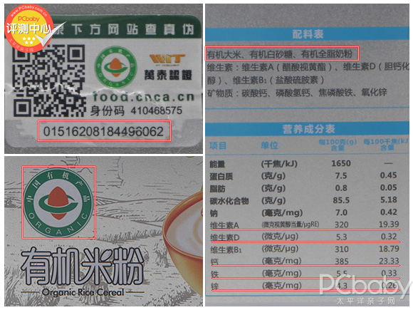 嬰尚有機(jī)米粉外盒上有有機(jī)產(chǎn)品標(biāo)識(shí)與有機(jī)防偽碼的粘條,盒身多處標(biāo)有“中國(guó)有機(jī)產(chǎn)品”字樣。且配料表中也標(biāo)注出了含有有機(jī)大米、有機(jī)白砂糖、有機(jī)全脂奶粉等有機(jī)成分。