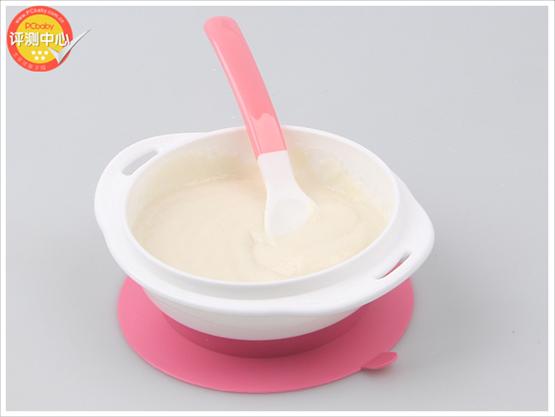 嬰尚有機(jī)米粉的沖調(diào)會(huì)不會(huì)很費(fèi)力呢?我們準(zhǔn)備110ml溫水,倒入輔食碗后,加入1包米粉,隨后輕輕攪拌,發(fā)現(xiàn)這款米粉溶解很快,沖調(diào)不費(fèi)力。從倒入溫水,到最后沖調(diào)好一碗米粉,整個(gè)過程用時(shí)不到1分鐘,方便又省心。(注:沖調(diào)說明里提到用奶或含蛋白質(zhì)的液體沖調(diào),考慮到配方中含有有機(jī)奶粉,測(cè)試時(shí)采用溫水沖調(diào))